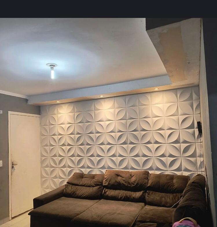 Reformado, sala com acabamento em gesso iluminação quente e fria